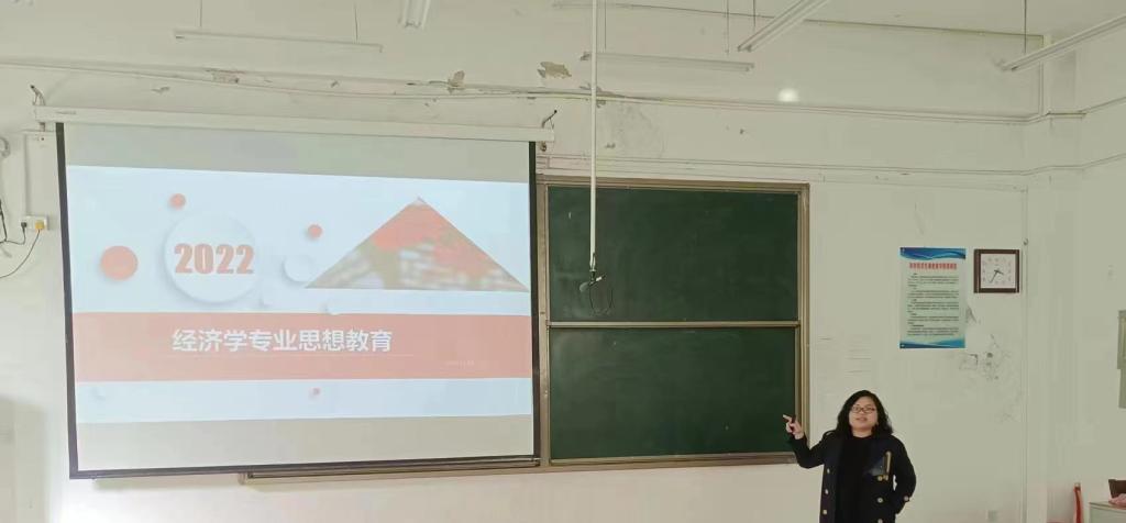 会议伊始,夏金梅副教授从经济学专业的历史、现状、团队队伍、培养定位、课程设置等方面向在场师生介绍了公司经济学专业的发展情况。同时,她向同学们详细讲解了公司经济学的专业特色及实践性教学环节,增强了同学们的专业认同感和学习信心。夏金梅老师指出,经济学专业经过二十年的发展,培养了大批优秀毕业生,经济学系老师们将一如既往地以饱满的热情欢迎2022级新同学,尽职尽责,让同学们学有所成。