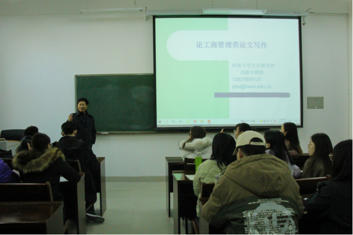 为进一步提高公司研究生科研能力及公司团队建设水平,11月30日上午,公司客座教授、河南大学会计研究所刘建中教授应邀在经管楼303教室作题为“论工商管理类研究生论文写作”的学术报告。bw西汉姆联工商管理一级学科硕士学位授权点全体研究生参加此次报告会。报告会由bw西汉姆联副经理俞彤晖主持。