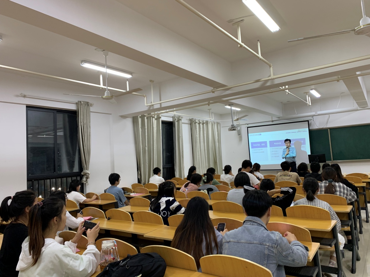 在宣讲会上,俞彤晖围绕团队力量、师生活动、招生简章、资助体系以及未来发展前景等方面进行系统讲解。同学们在台下专心致志听讲,并积极提问,俞彤晖一一为大家答疑解惑,并鼓励同学们积极报考,现场互动频繁,听完讲座后,同学们纷纷表示受益匪浅。