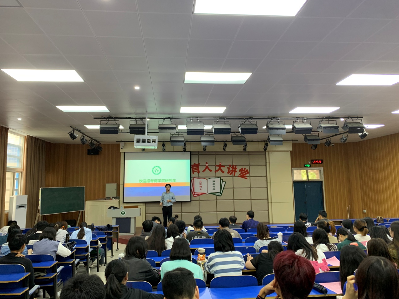 9月21日晚,俞彤晖在信阳公司综合楼608教室进行bw西汉姆联研究生招生宣传。