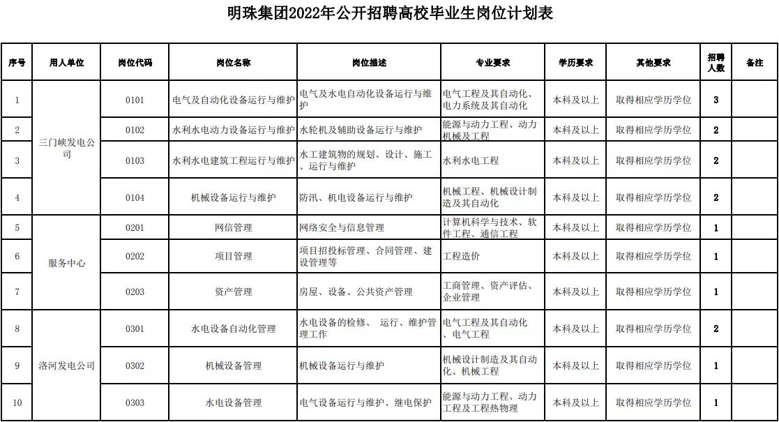 招聘岗位及要求详见《明珠集团2022年公开招聘高校毕业生岗位计划表》(附件1)。