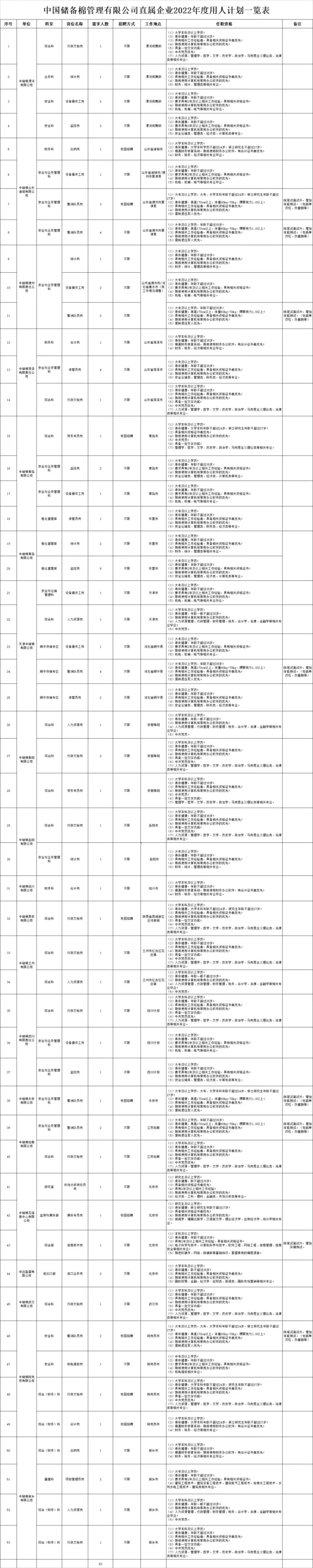为进一步拓宽选人用人视野,中国储备棉管理有限公司直属企业现面向全国,采取公开选聘方式计划招聘83名普通员工岗。