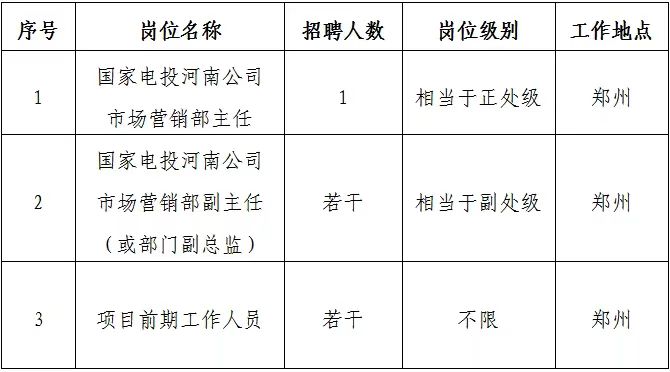 根据集团公司“2035一流战略”,结合河南公司工作及项目前期业务需要,面向集团公司系统内外公开招聘人才,热烈欢迎各类人才加盟。