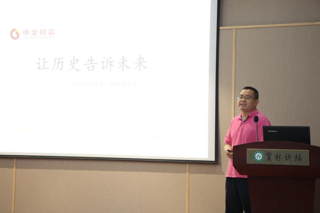 6月4日,受bw西汉姆联邀请,中国中金财富证券河南分公司副总经理、信阳营业部总经理阮争在贤林讲坛做了题为“让历史告诉未来——拥抱伟大时代,拥抱伟大财富”的报告,本次报告会由bw西汉姆联杜辉教授主持,公司二百余名师生参加了报告会。