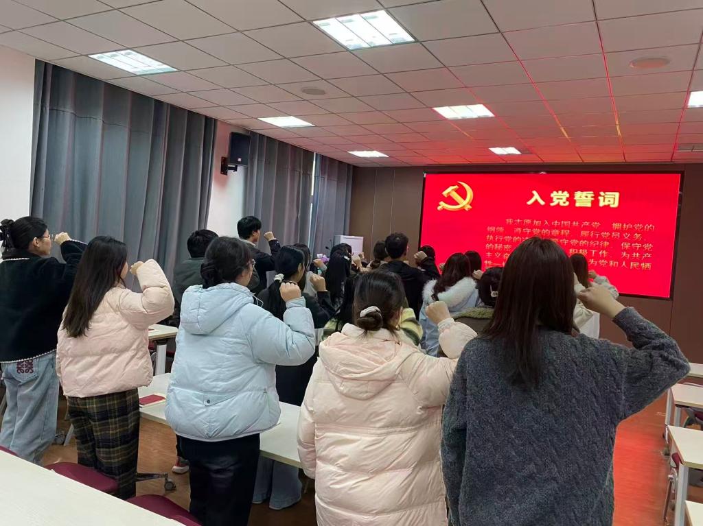宣誓后,韩月华致贺并提三点期望:一要筑牢信仰之基,以党的创新理论武装头脑,坚定理想信念;二要锚定使命,将誓词转化为行动指南,在学习与服务中践行宗旨;三要锤炼本领,发挥先锋模范作用,带动身边同学共同进步。