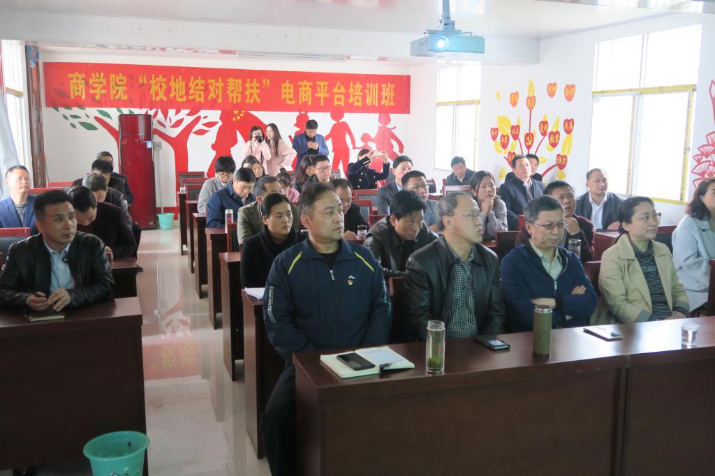 为深入学习贯彻习近平总书记扶贫开发重要战略思想,认真贯彻落实省委、公司党委关于打好精准脱贫攻坚战的决策部署,积极履行校地结对帮扶职责,推动脱贫攻坚工作取得实实在在成效,3月29日,由公司教工第一党支部组建的“科技扶贫”服务团在商公司党委书记盛正国的带领下前往潢川万营村举办“校地结对帮扶”电商平台培训活动,周边乡镇的干部及贫困村民近三十人参加了培训。
