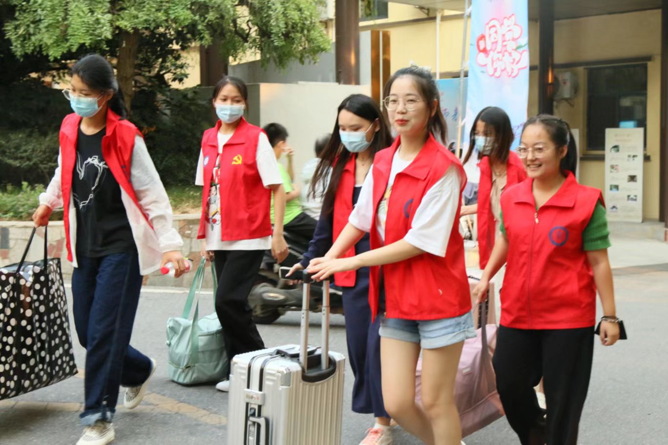 在迎新现场,志愿者们积极配合公司安排,细心讲解报道流程,耐心解答新生疑问,做好接站、领路、咨询、协助新生搬运行李等一系列工作。他们温馨的笑容、热情的服务态度、蓬勃的朝气感染着每一位新生,让初入校园的小兔耳深切感受到家人般的温暖与关怀。