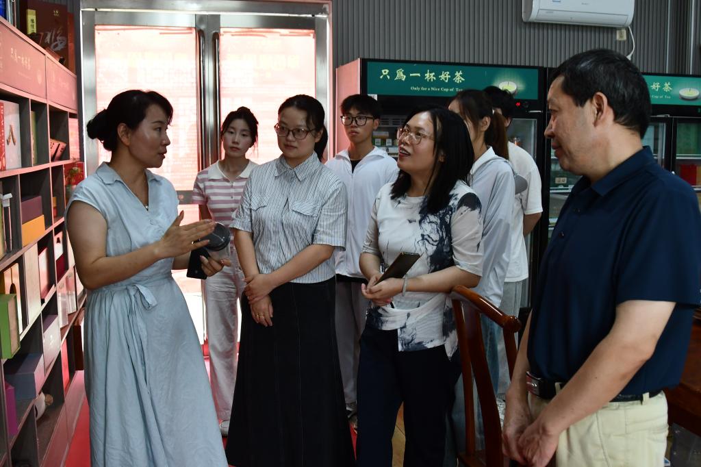 这支由公司党委副书记黄钰莹、工商管理系主任徐志芬博士带队的实践团队,首站来到了豫信茶叶有限公司。作为信阳毛尖产业的龙头企业,豫信茶叶集研发、种植、加工、销售于一体,拥有多项权威认证和荣誉。师生们围绕茶企发展中的困惑展开调研,特别是对豫信打造的“三茶一菜一水”多元产品矩阵进行了深入剖析。“豫信茶叶跳出单一茶叶产品的思路,开发茶酒、茶水等多元化产品,这不仅是丰富产品线,更是通过产业链延伸,精准满足不同消费场景和人群的需求,是提升市场竞争力的生动实践,”团队成员李浩然在调研后分析道,“他们构建的‘三茶一菜一水’产品矩阵,让我们对课堂上学到的‘产业链延伸’与‘产品组合策略’理论有了教科书般的现实理解。