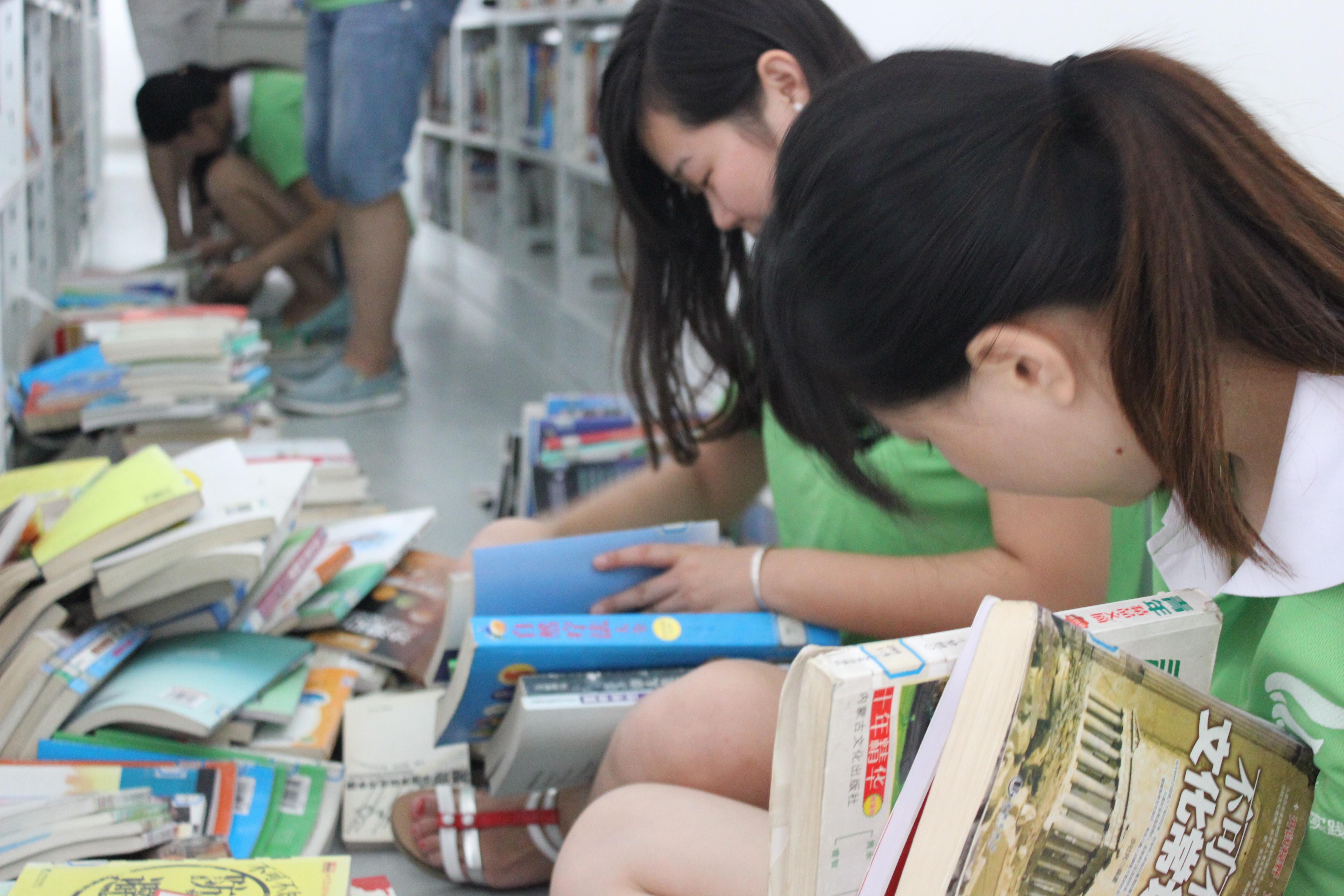 6月28日经济公司社会实践小分队在陈老师的带领下来到信阳市图书馆进行义务整理图书活动。同学们在图书馆老师的指导下开展图书分类工作。同学们团结一致,互相帮助,或一人抱着多本书,或坐在地上细致分类,或用推车运书,同学们面对数量繁多的图书毫无怨言,都认真、耐心、负责地工作。大家相互帮忙,整理工作中不时有欢快的笑声,场面温馨。