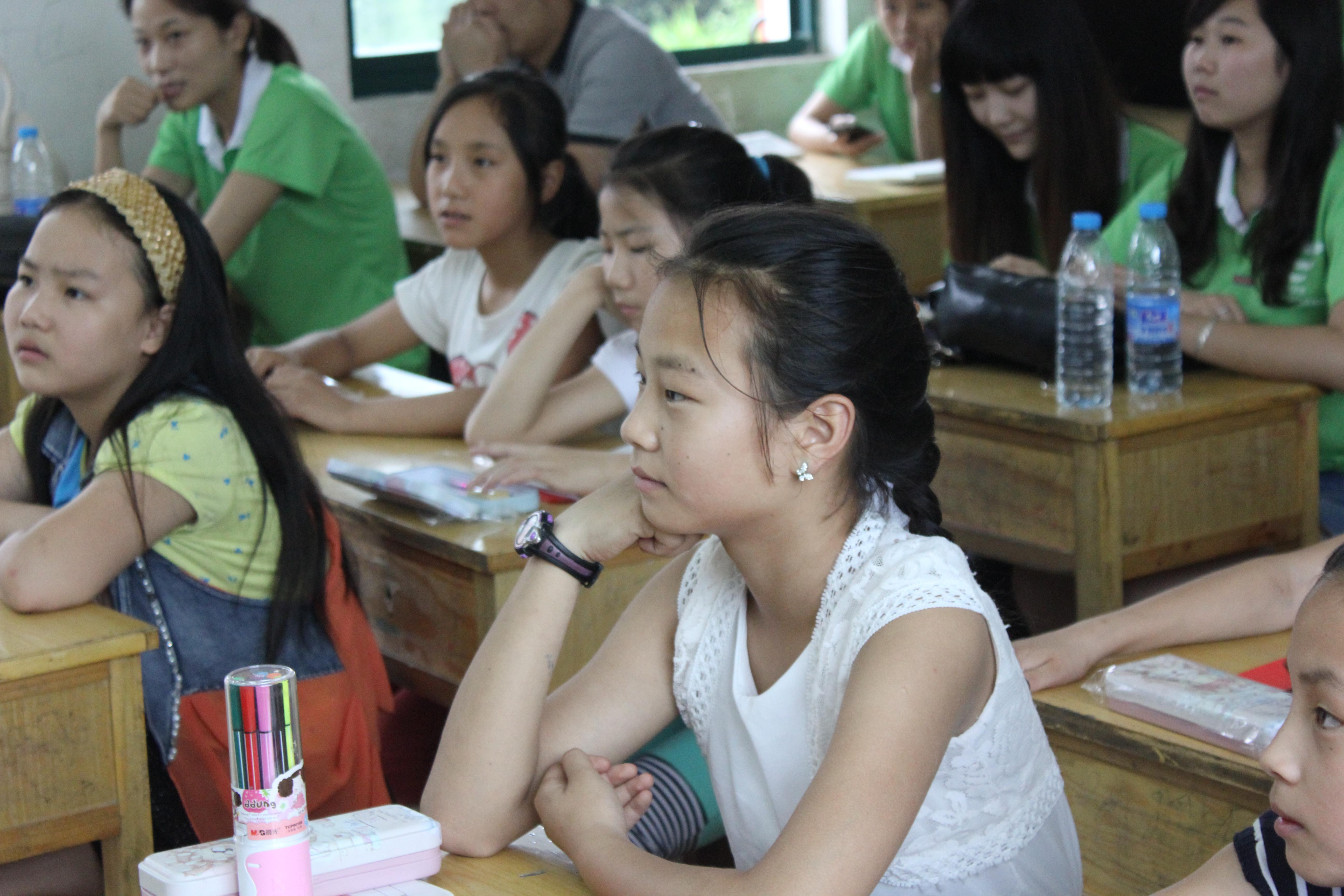 在孩子们的热烈欢迎下老员工们充当了他们老师,老员工针对孩子们所学课程进度进行了有针对性的授课。老员工们讲课热情高涨,方法有趣:史丹丹同学以《送元二使安西》为切入点,详细地向员工们介绍了诗词分析技巧、并与大家富有感情地朗诵诗词,姚佳琪同学就单位换算与大家分享了数学学习方法,并交流了自己多年数学学习的感悟、郝悦同学通过现场英语写作来与大家共同探讨语法知识,在孩子的配合下,一篇作文终于完整写出。授课期间孩子们边听边记,积极发言,气氛活泼热烈。老员工们勉励孩子们刻苦学习,不忘理想,以优异成绩回报关心自己的人。最后教学活动在《同一首歌》、《小星星》的歌声中结束,课后孩子们纷纷表示哥哥姐姐的讲课幽默风趣,易于接受,让自己发现了学习的乐趣。