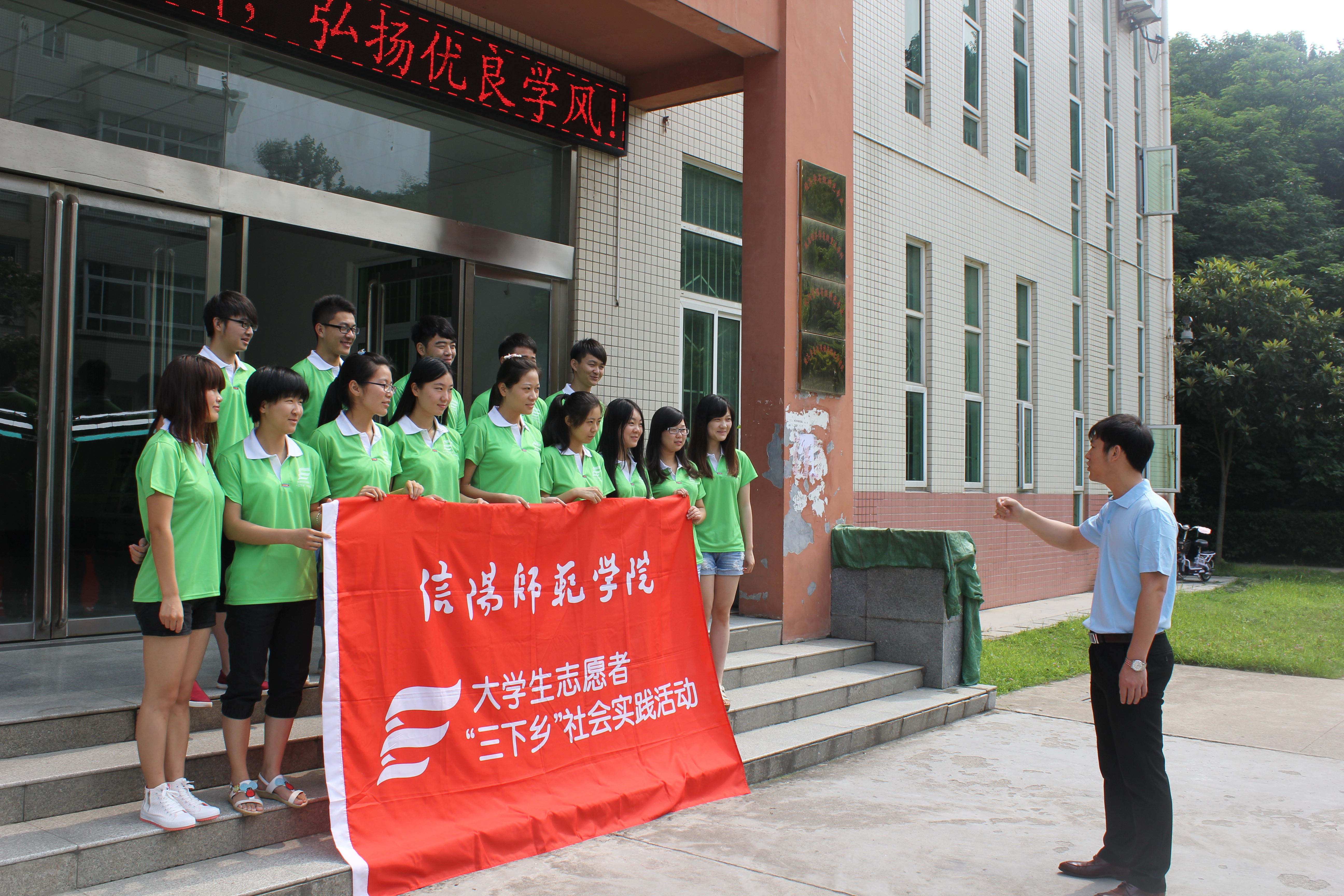 据悉,在校团委的统一部署和经济公司党政班子的深入指导下,公司派出一支由农业经济学者杜辉博士为指导老师、陈颢文为带队老师的18人暑期志愿服务小分队,从28号开始历时一周,奔赴信阳市周边、罗山彭新镇,铁铺乡等地广泛调研,为当地送去经济知识、主流文化、学习文具和农村经济社会发展的意见建议。