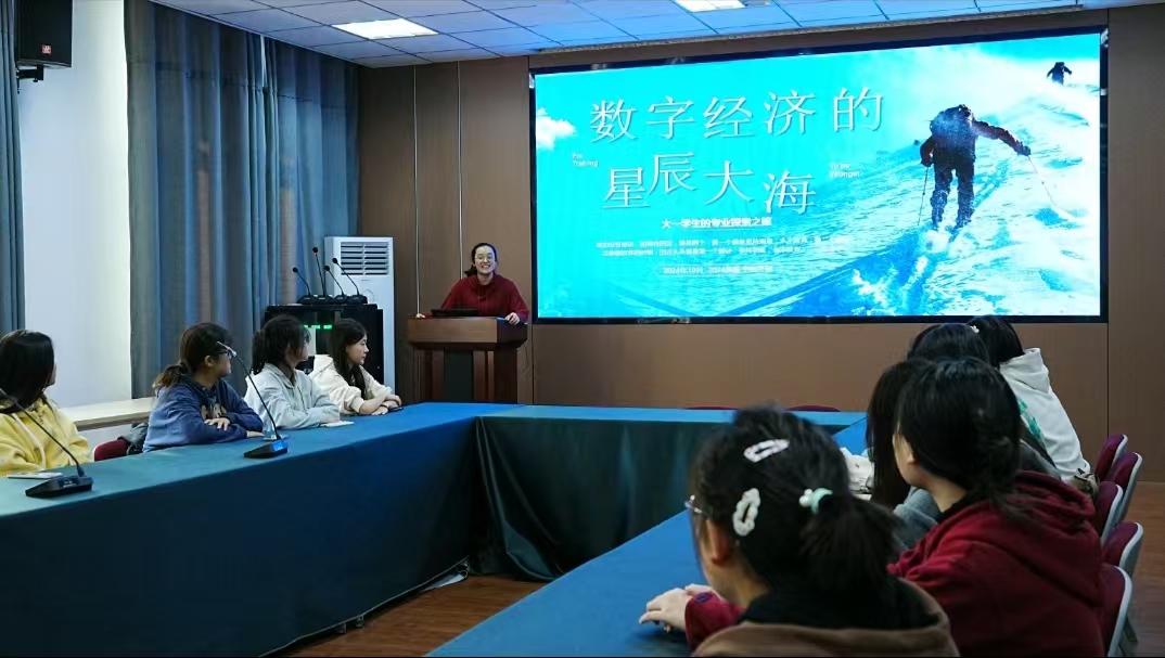 10月29日,2024级数字经济班在经管楼310会议室开展以“数字经济的星辰大海”为主题的班会。校员工处副处长杨乐、公司党委书记李辉、公司党委副书记黄钰莹莅临指导,24级数字经济班全体同学参加本次会议。