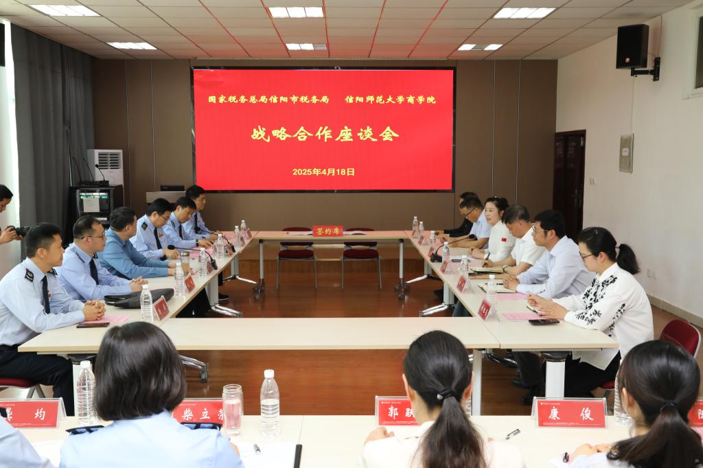余金霞在致辞中指出,税校合作创新了税收宣传形式,借助青年力量扩大税收宣传影响力,意义重大。希望双方持续拓展合作深度与广度,让税收宣传成为弘扬社会法治精神、推动经济社会发展的重要助力。胡伟介绍了信阳市税务局基本情况,强调税收事业发展对高校人才与科研支持的需求,希望税校双方达成战略合作,共同为中国式现代化信阳税务实践和信阳地方高质量发展作出新的更大贡献。王娟表示,公司将充分发挥学科专业和智库资政优势,与信阳市税务局积极构建好局校共建、人才共育、项目共研、问题共商、成果共享的税校一体化合作模式,打造信阳税校联动的宣传品牌,为信阳经济社会发展贡献更多力量。