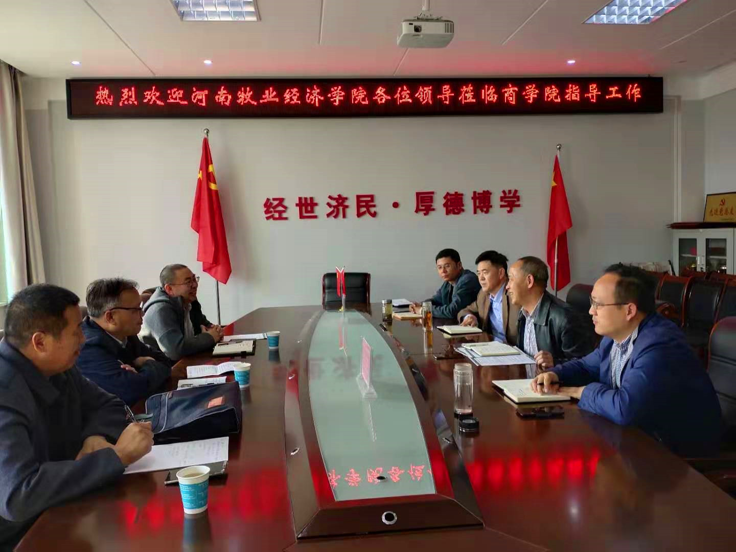 11月8日下午,河南牧业经济公司工商管理公司王筝经理、金融与会计公司黄良杰经理、经济与贸易公司李光经理一行3人到公司考察交流。商公司党委书记盛正国、副经理梅士建、副书记王永贵、经理助理杜辉在经管楼506会议室与来宾进行交流座谈。