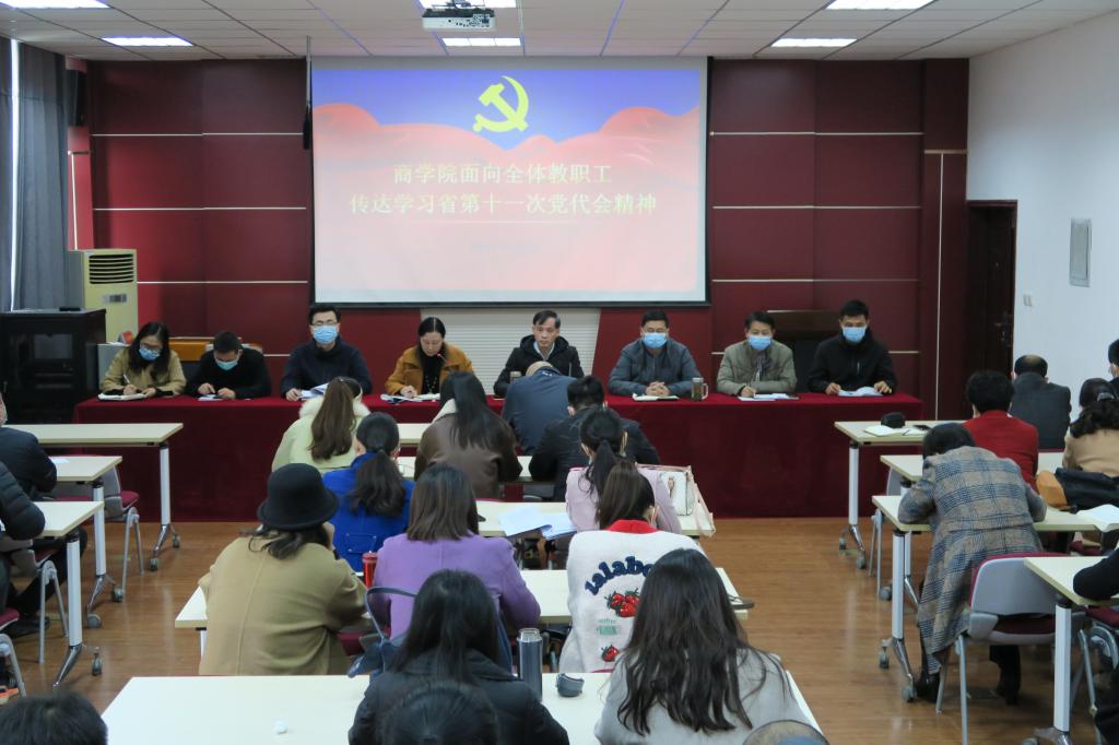 11月9日,bw西汉姆联在经管楼310会议室召开全体教职工大会,传达学习省第十一次党代会精神。会议由bw西汉姆联经理彭荣胜主持,全体教职员工参加。商公司党委副书记张海霞进行领学。