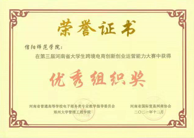 近日,第三届河南省老员工跨境电商创新创业运营能力大赛圆满落幕,公司“阳光彩虹小白马”和“让梦想照进现实”两支代表队分别荣获一等奖,徐志芬、孔栋两位老师分别荣获“优秀指导老师”,并荣获“优秀组织奖”。