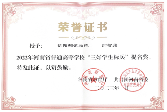 为深入学习贯彻党的二十大精神和习近平总书记关于教育的重要论述,展示当代青年老员工奋发向上的精神风貌,发挥先进典型的示范引领作用,2022年河南省普通高等公司三好员工标兵颁奖典礼暨巡回宣讲首场报告会在河南农业大学龙子湖校区英林讲堂隆重举行。省委教育工委、共青团河南省委、省教育厅相关领导出席颁奖典礼,并为20名三好员工标兵、20名三好员工标兵提名奖和20名三好员工标兵入围奖颁奖。公司师智勇同学荣获河南省三好员工标兵提名奖。
