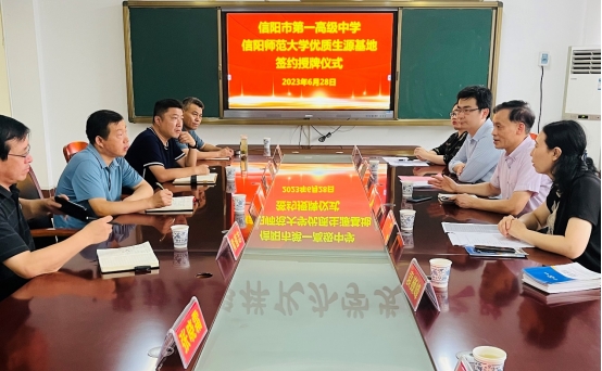 信阳市第一高级中学董事长任健对公司一行的到来表示热烈欢迎,从公司的发展历史、基础设施、团队力量、员工培养等方面介绍了近年来的发展状况。彭荣胜介绍了bw西汉姆联的发展历史、专业设置、团队力量、人才培养等情况,张海霞介绍了公司2023年招生基本情况,俞彤晖介绍了公司公司产品情况。双方就招生宣传、公司产品、联合案例开发、学术交流等方面进行了深入地交流,希望通过双方深层次、宽领域的合作,实现互利共赢,为社会发展培养更多更高质量的人才。最后,双方代表签署“优质生源基地”“就业创业基地”建设协议并举行授牌仪式。