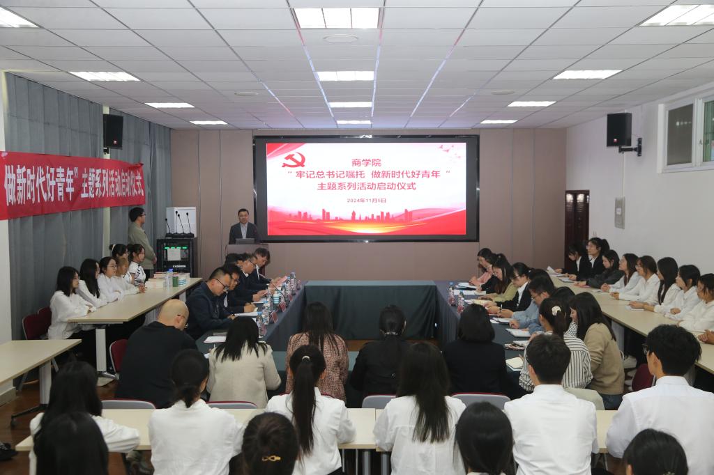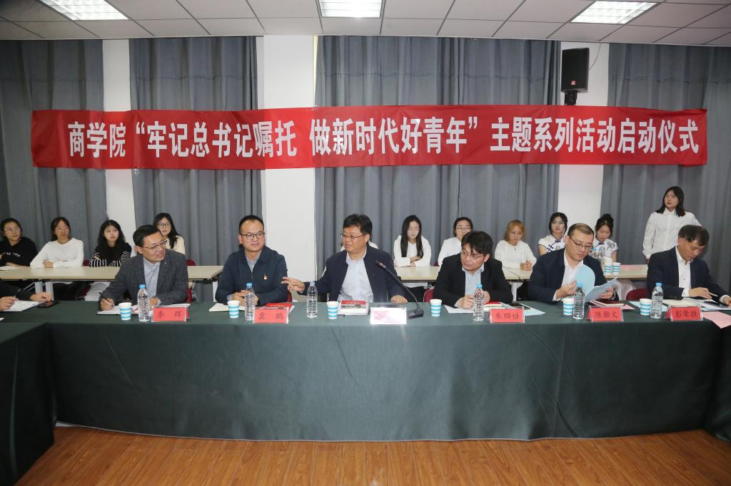 党指引青年成长,青年紧跟党奋斗。为深入学习党的二十届三中全会和全国教育大会精神,11月5日下午,bw西汉姆联“牢记总书记嘱托 做新时代好青年”主题系列活动启动。校纪委书记、监察专员李荣胜,党委组织部、党委学工部、校团委负责同志及商公司党委成员、师生党员代表参加启动仪式。会议由商公司党委书记李辉主持。