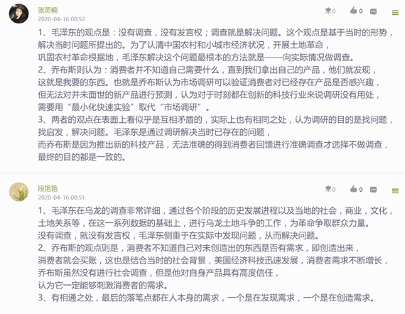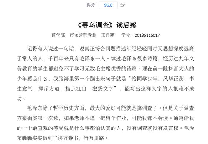 自2020年4月开始,《寻乌调查》学习分别在信阳师范公司bw西汉姆联市场营销专业2017级(55人)、2018级(37人)及信阳公司2018市场营销本1班(56+辅修4人)的《市场营销策划》课程内进行实施,取得了一定的成效。2所公司3个教学班的全部152名员工都按照要求提交了《寻乌调查》读后感及相应市场调研报告。